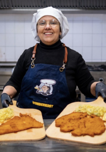 Unser Logo sieht nicht nur super aus, sondern dahinter versteckt sich ganz viel Bedeutung. Abgebildet ist unsere Köchin seit Beginn an. Hinter der Wunderkost versteckt sich meine Mutter und kocht sich tagtäglich in Eure Herzen. Geboren in Afghanistan und im Alter von 21 Jahren vom Krieg nach Deutschland geflüchtet, hat sie hier mit Unterstützung gelernt, wie man bayerische Speisen kocht. Da das Kochen ihr im Blut steckt, konnte sie ihre ganz besondere Note mit dazu tun.